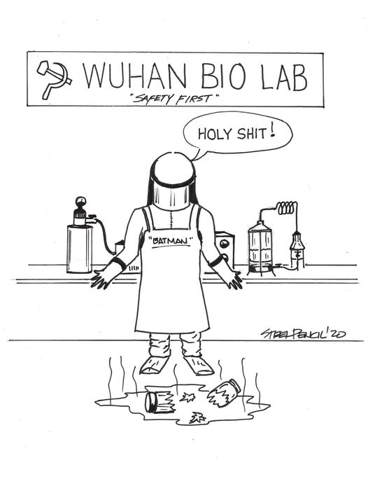 In the very beginning of this whole covid disaster, China restricted travel into Wuhan from other parts of China, and out of Wuhan to other parts of China. Conversely, China allowed travel from Wuhan to anywhere else in the world. The period of time when this all happened was a Chinese holiday, and Chinese citizens from Wuhan, fanned out to locations around the world. Now, I don’t have a degree from a high powered university, matter of fact, my diploma is from a high school in Oklahoma, but I had this shit figured out immediately. A year has come and gone, and we are still in this battle to eradicate covid. Suddenly, all of the naysayers, that refused to admit the obvious, are now jumping on the ” Wuhan Lab Accident ” bandwagon. I did the cartoon below, in April of 2020.
